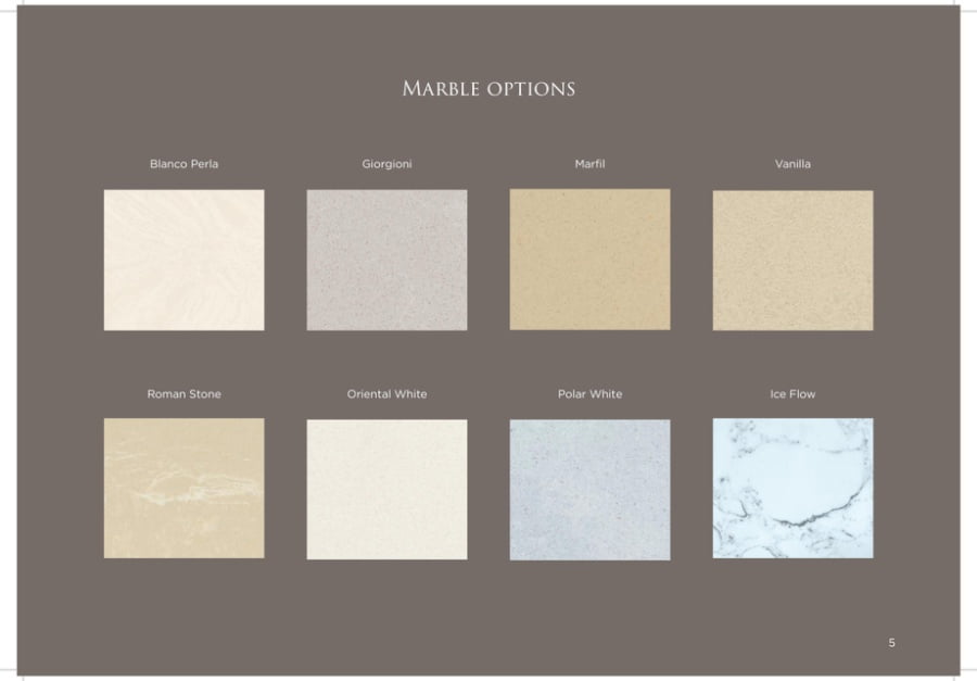 Shown in Oriental White marble with a Giorgioni Grey band