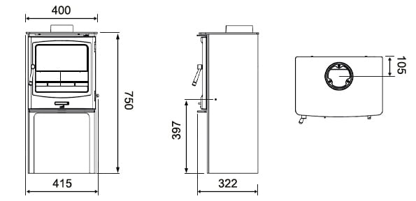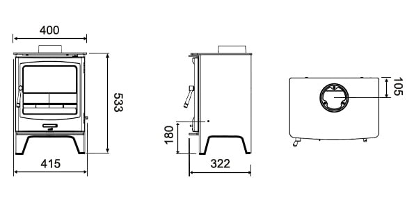 - Flue Outlet: Top or Rear 125mm (5″)