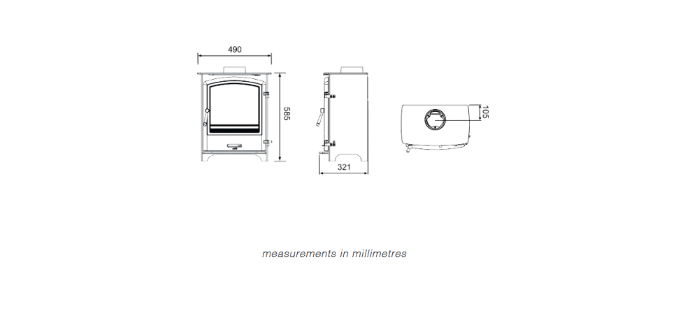 - Flue Outlet: Top or Rear 125mm (5″)