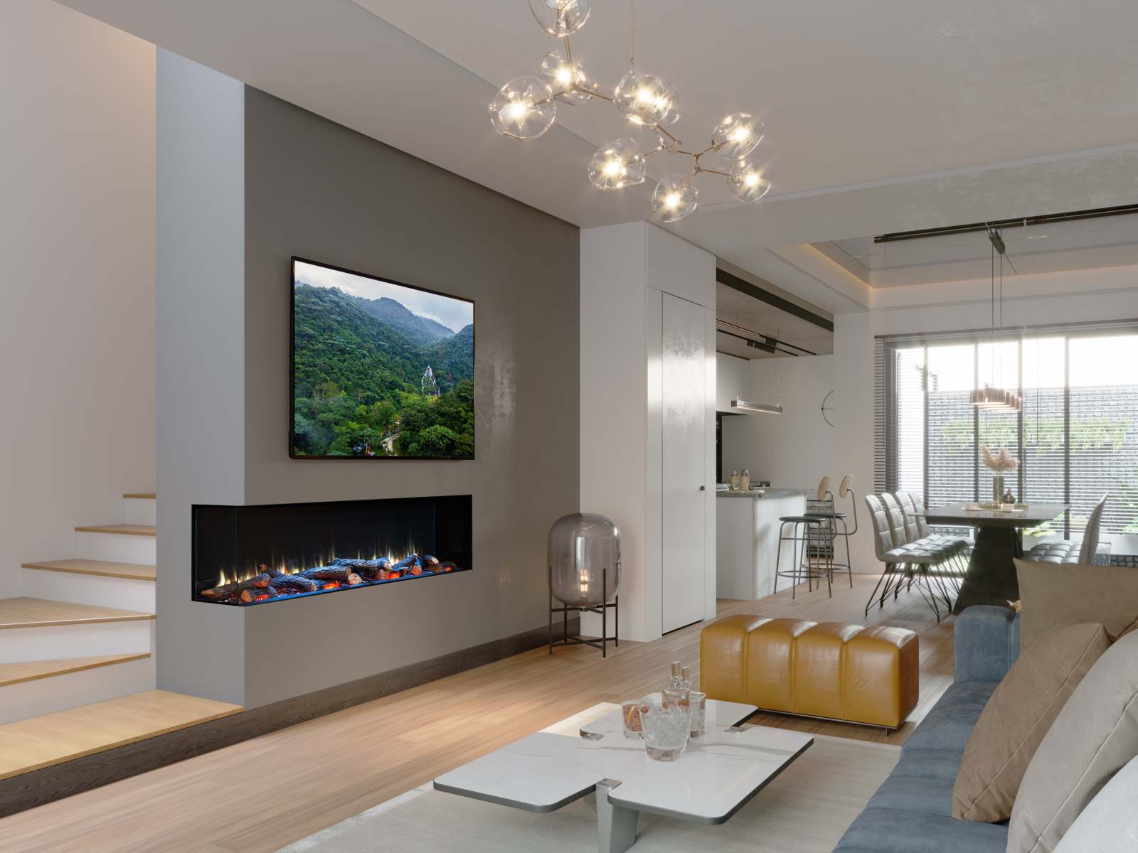 - Optional Mood Settings – Create the right mood in your room by lighting the area surrounding your fire