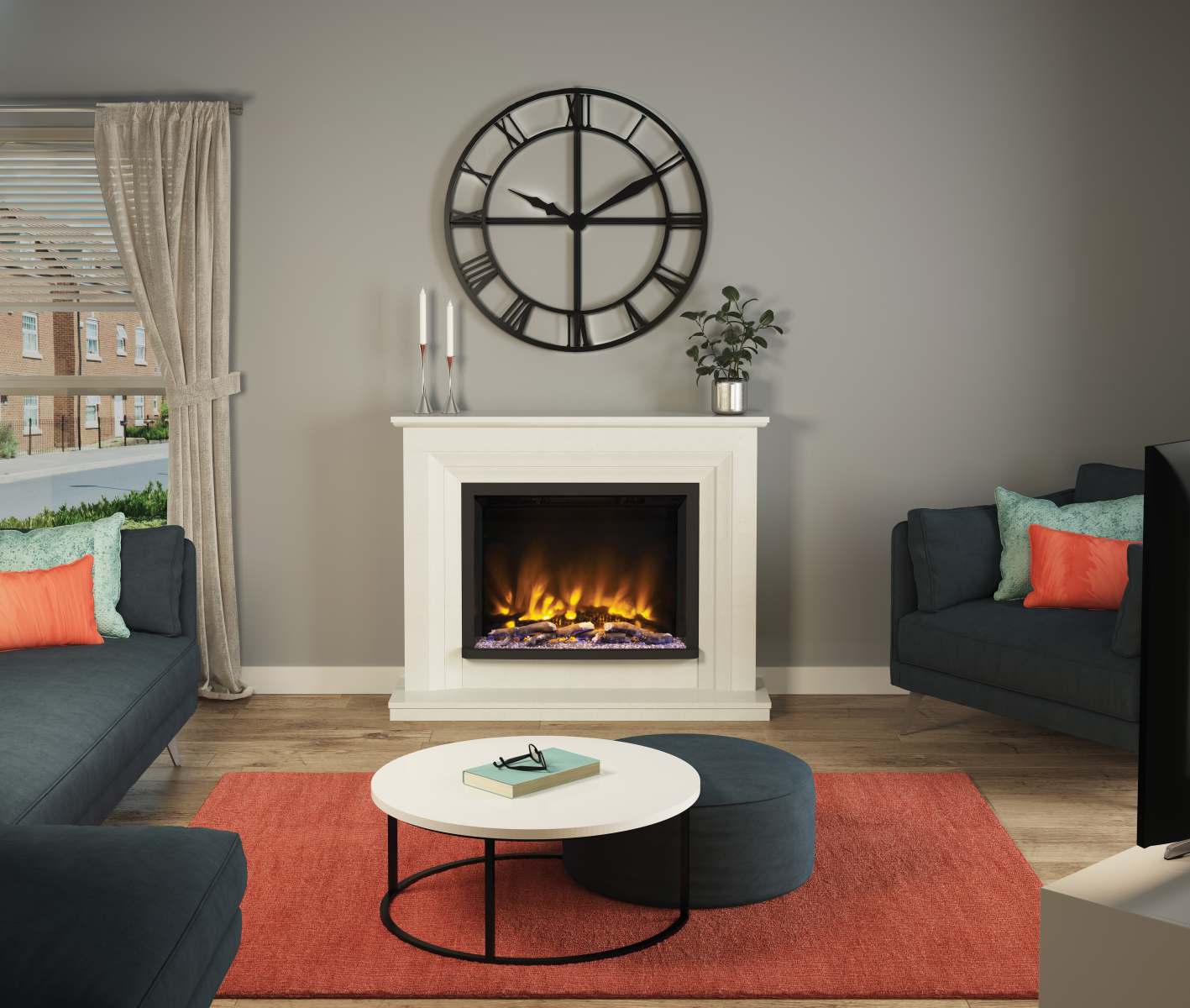 - 5D flame effect with three dimmable flame colour settings