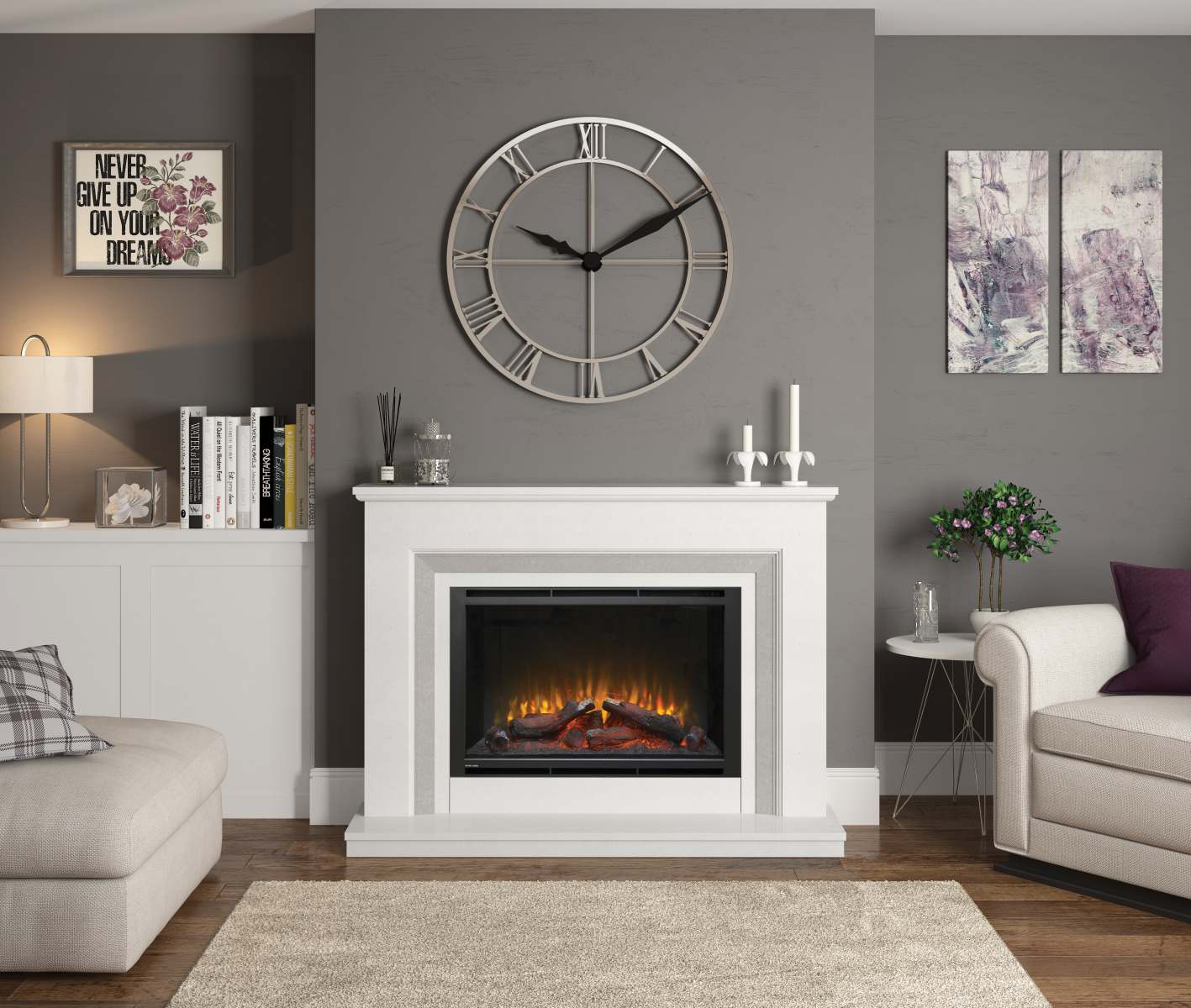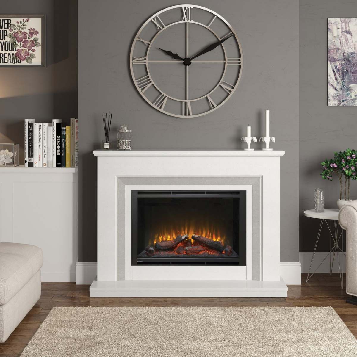 - Featuring the Elsie 950 HD widescreen, glass fronted fire with realistic glowing log bed.