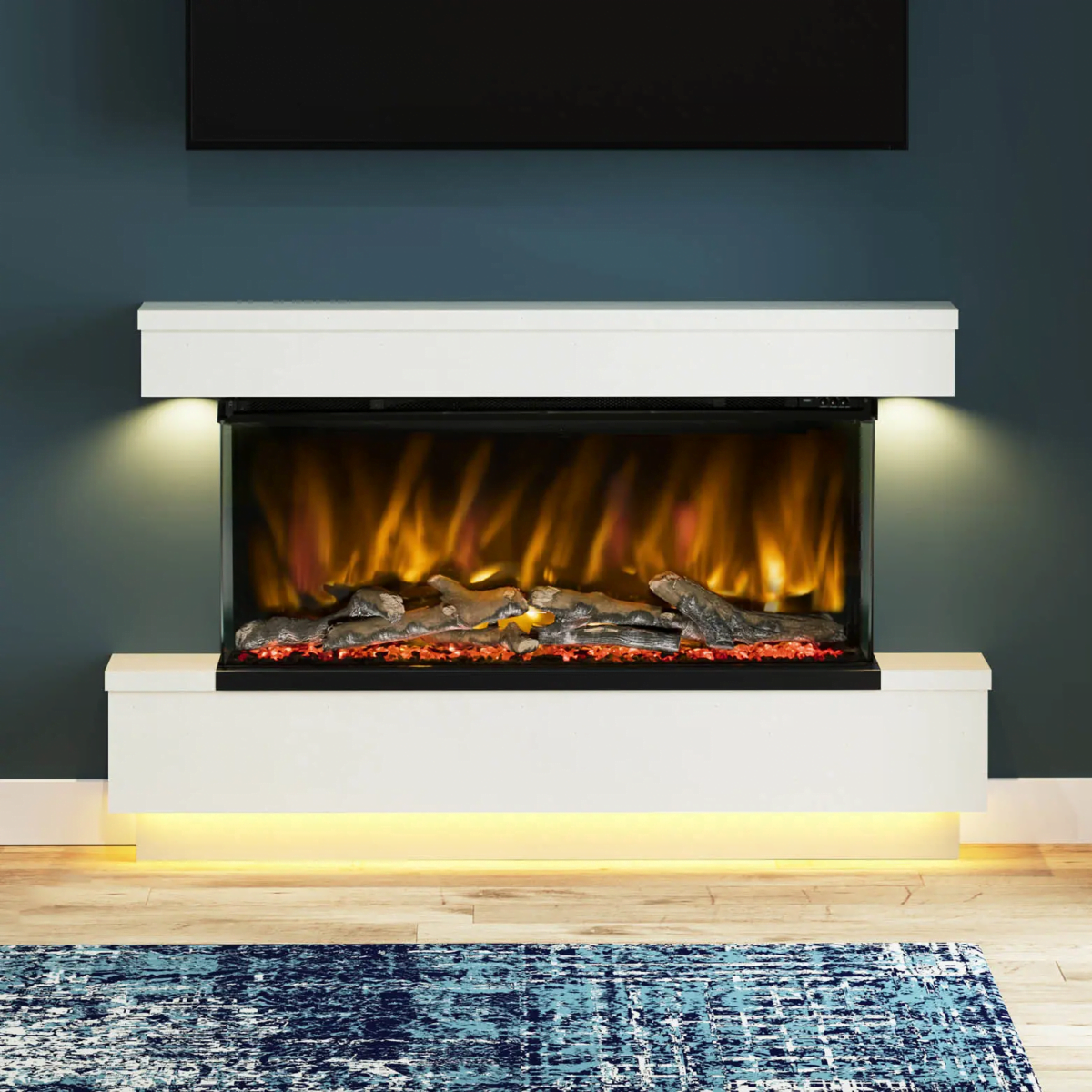 - 5D flame effect with three dimmable flame colour settings