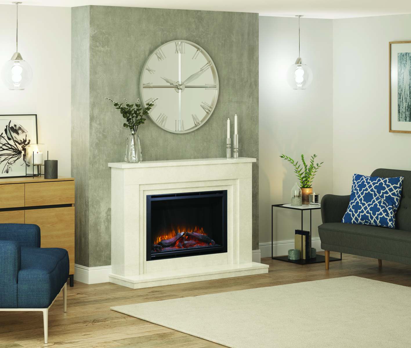 - Featuring the Elsie 950 HD widescreen, glass fronted fire with realistic glowing log bed.