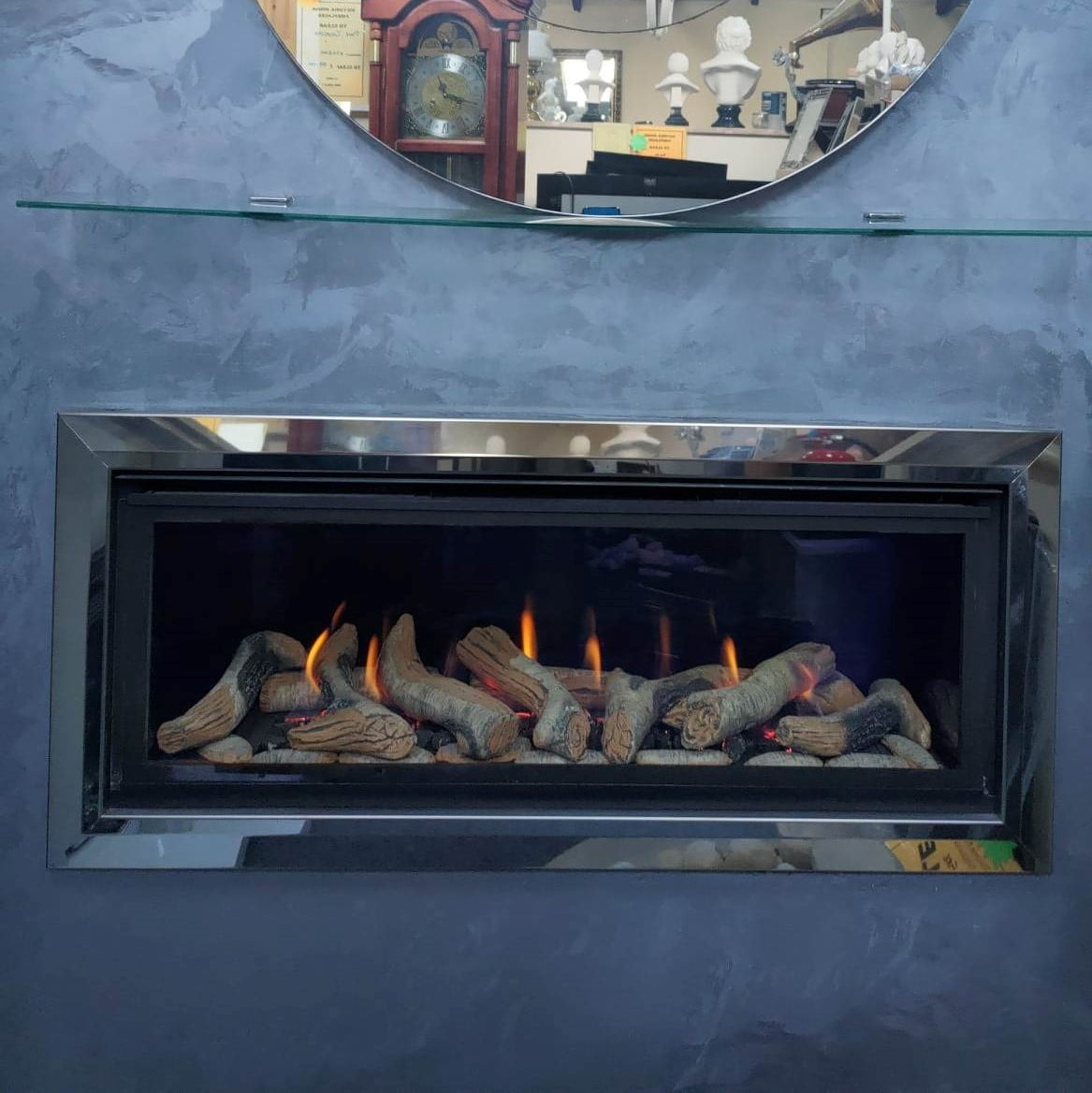 - Black Mirror Glass firebox liners that reflect the flames, adding depth to the flame effect High-definition fresh-cut finish