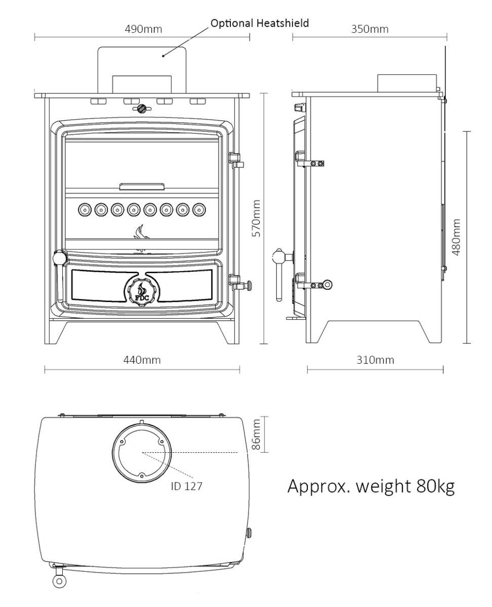 - Efficiency – 81.1% wood, 82.9% smokeless fuel