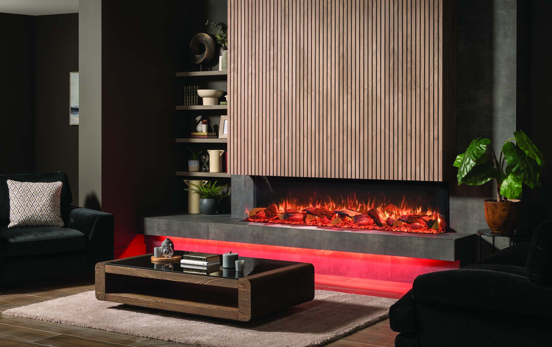 True-to-life Split Oak or optional Split Silver Birch glowing fuel-effects