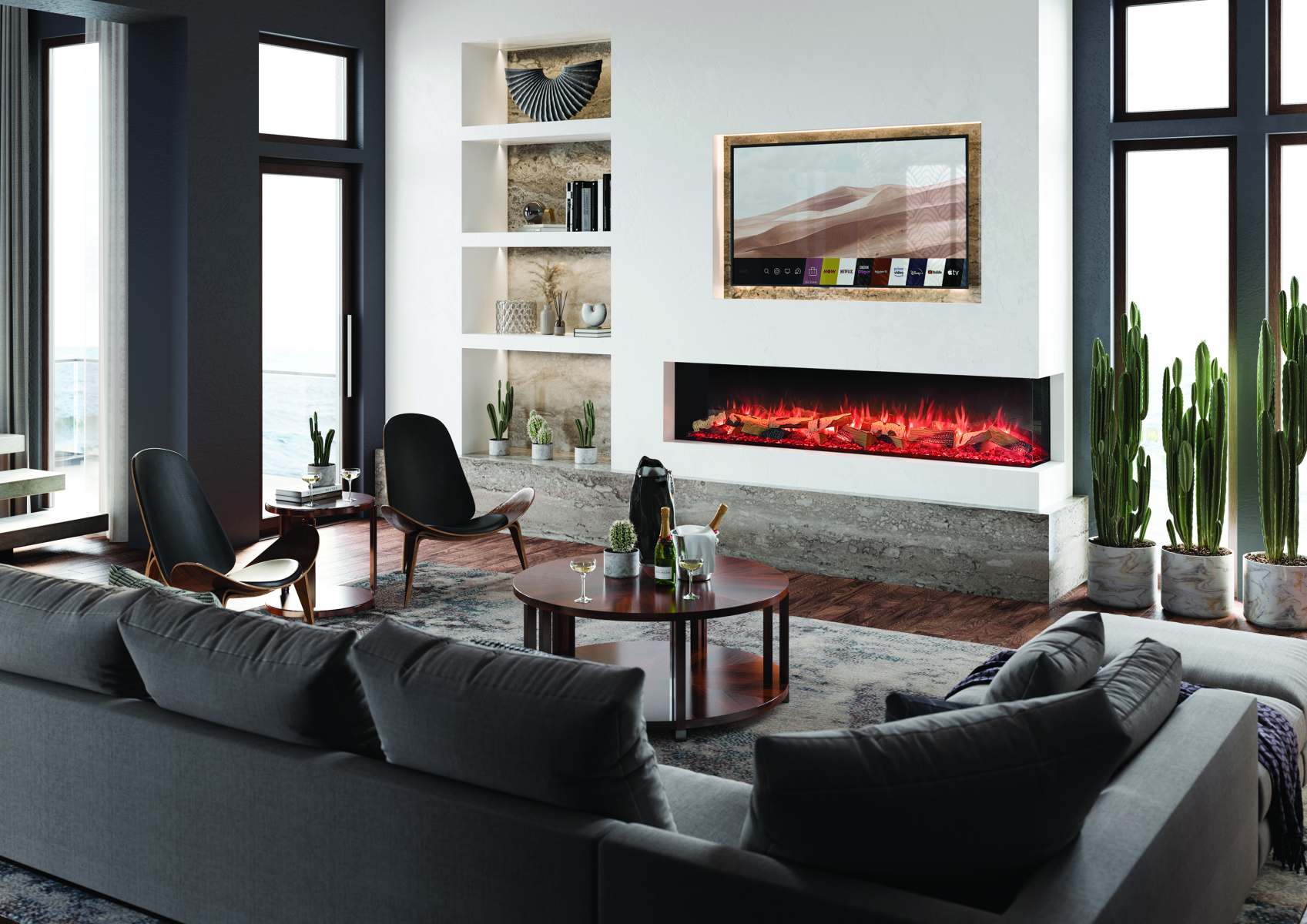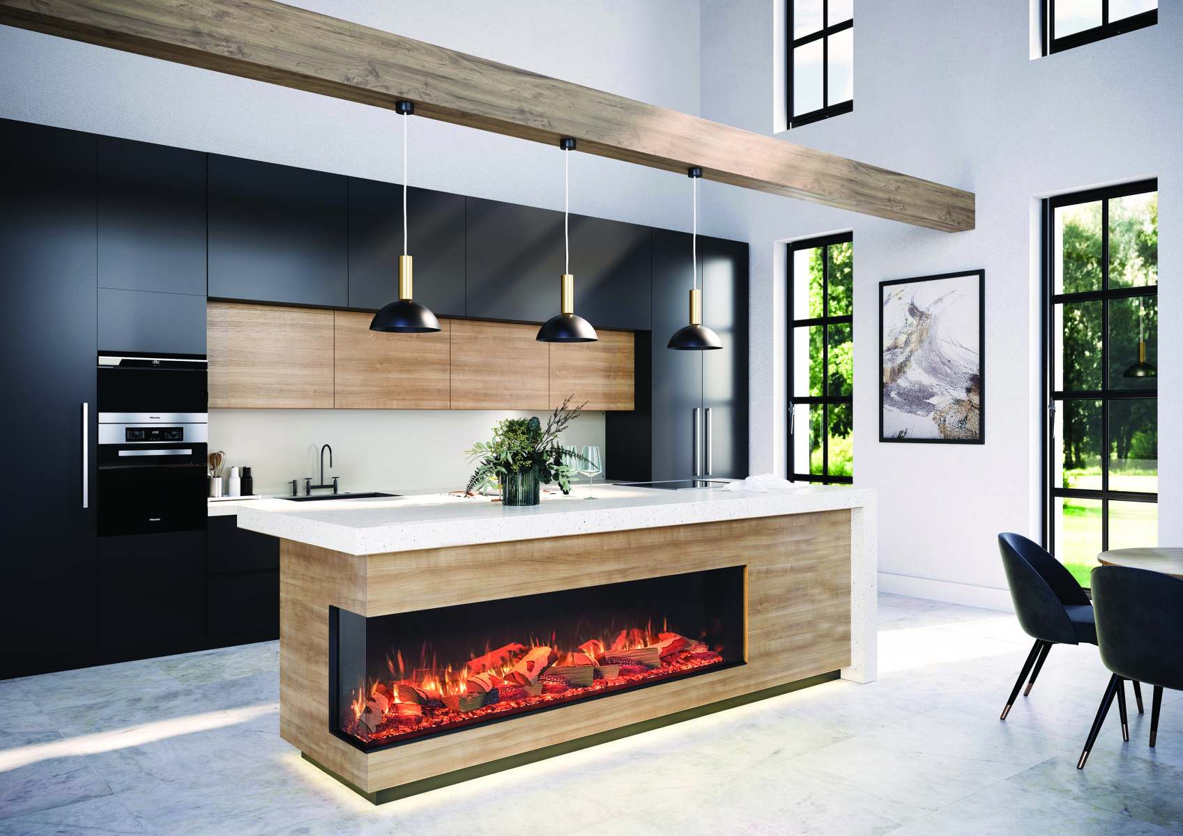 Can be installed as a one, two or three-sided fire