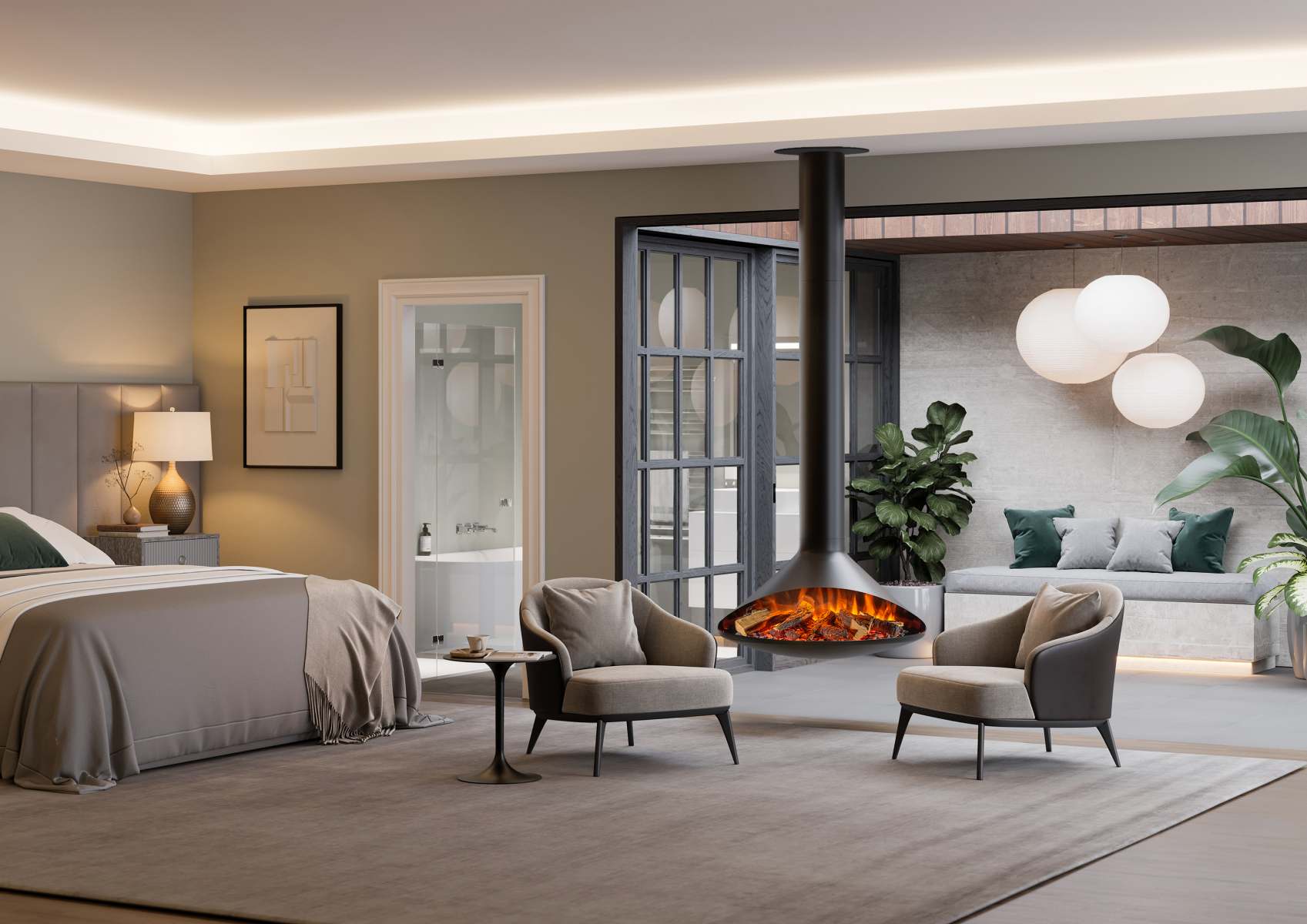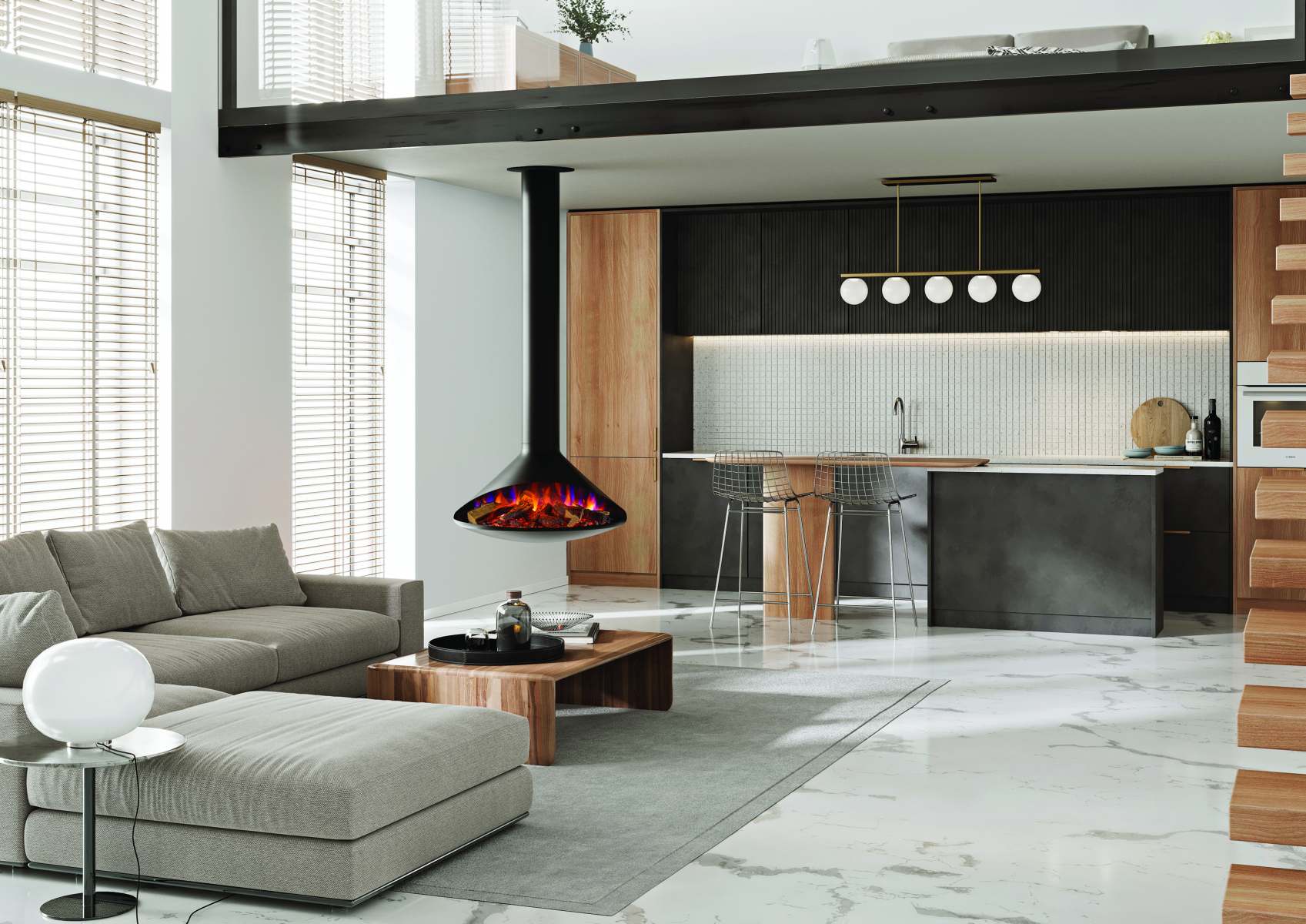 - Ceiling-hung fire
