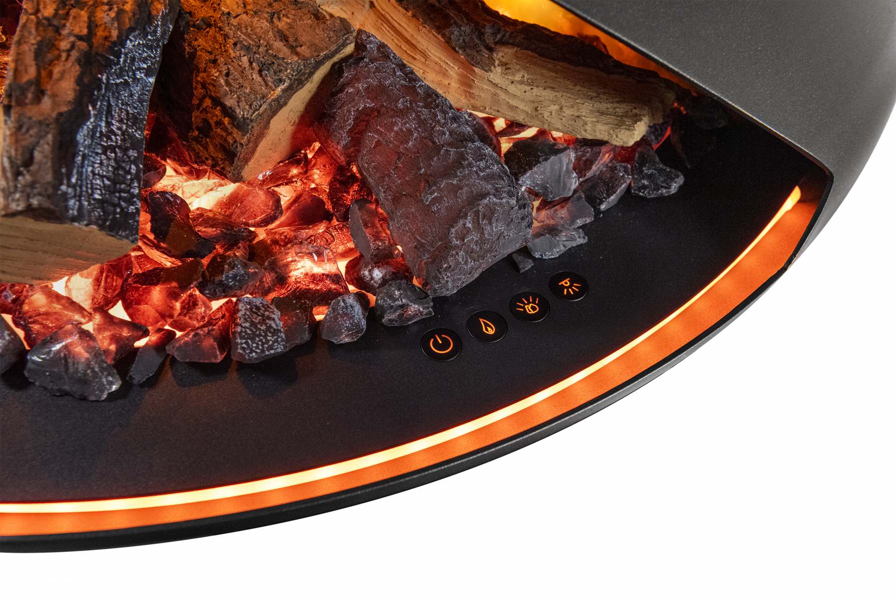 - Adjustable brightness for fuel bed, moodlighting and flame effects