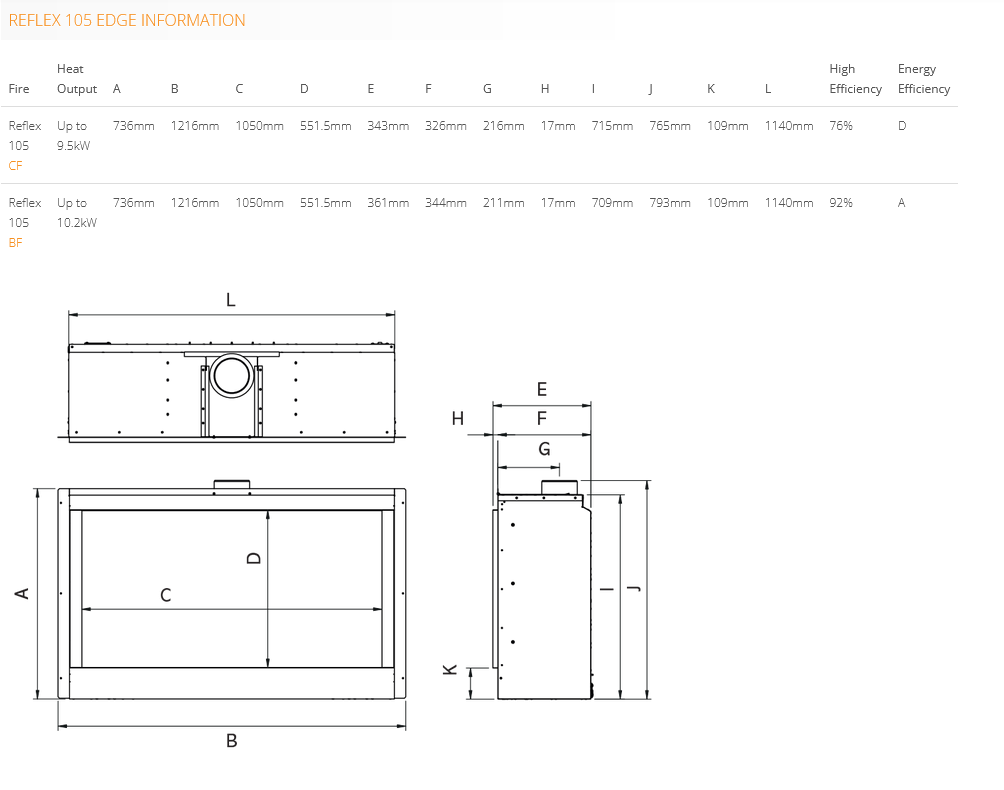 - Linings – Brick effect, Ledgestone Effect, EchoFlame Black Glass