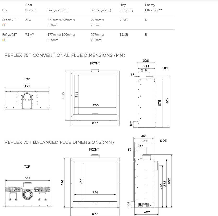 - Linings – Brick effect, Ledgestone Effect, EchoFlame Black Glass, Fluted Vermiculite & Black Reeded
