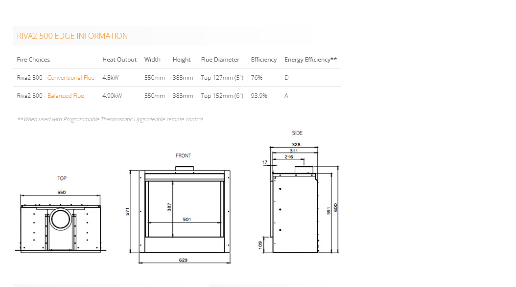 - Linings – Vermiculite, Brick Effect, Black Reeded, Black Glass, Ledgestone Effect