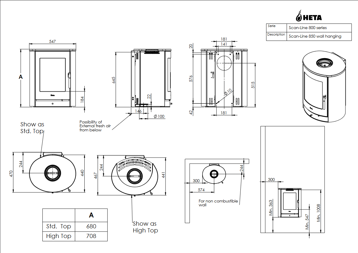 - Distance from rear of stove to centre of top flue outlet (mm) 214