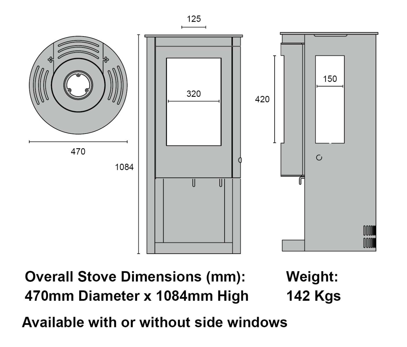 - Side Distance to Combustibles: No side Windows – 300mm / With Side Windows – 500mm
