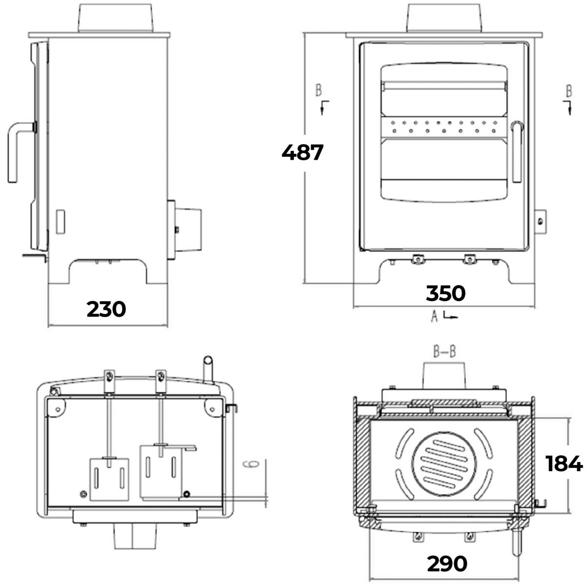 - Designed and assembled in the UK, these stoves are the most efficient of their size in the UK, together with the lowest emissions (Dust Particles) available today.
