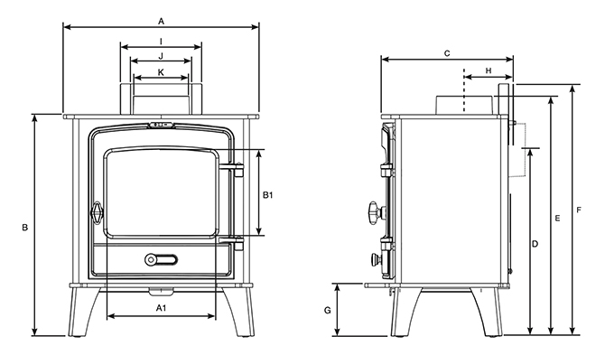 - Flue Outlet – 6″ Top or Rear