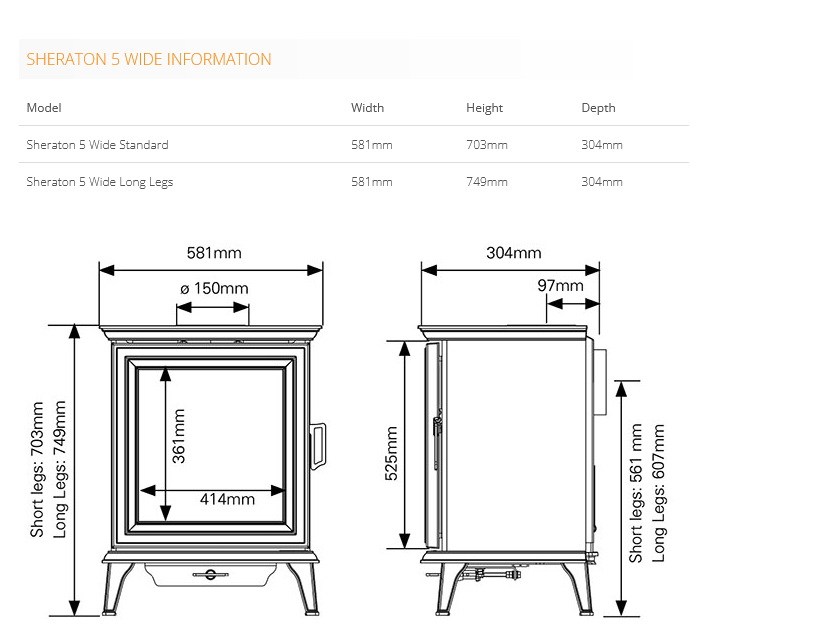 Stovax Sheraton 5 Wide