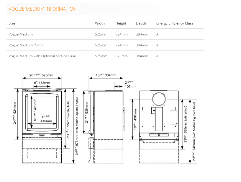 Nominal Heat Output and Range: WB: 7.8kW & MF: 8.2kW (When Burning Smokeless Fuels)
