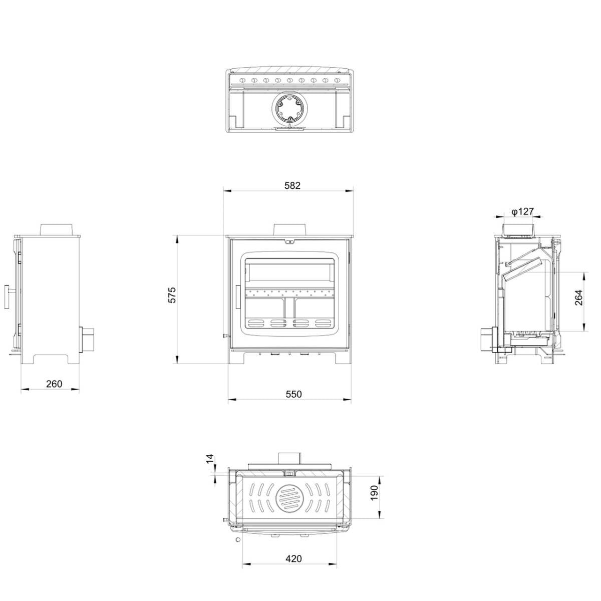 Fireline FPi5 3 & 4 Sided Multi-Fuel Stove